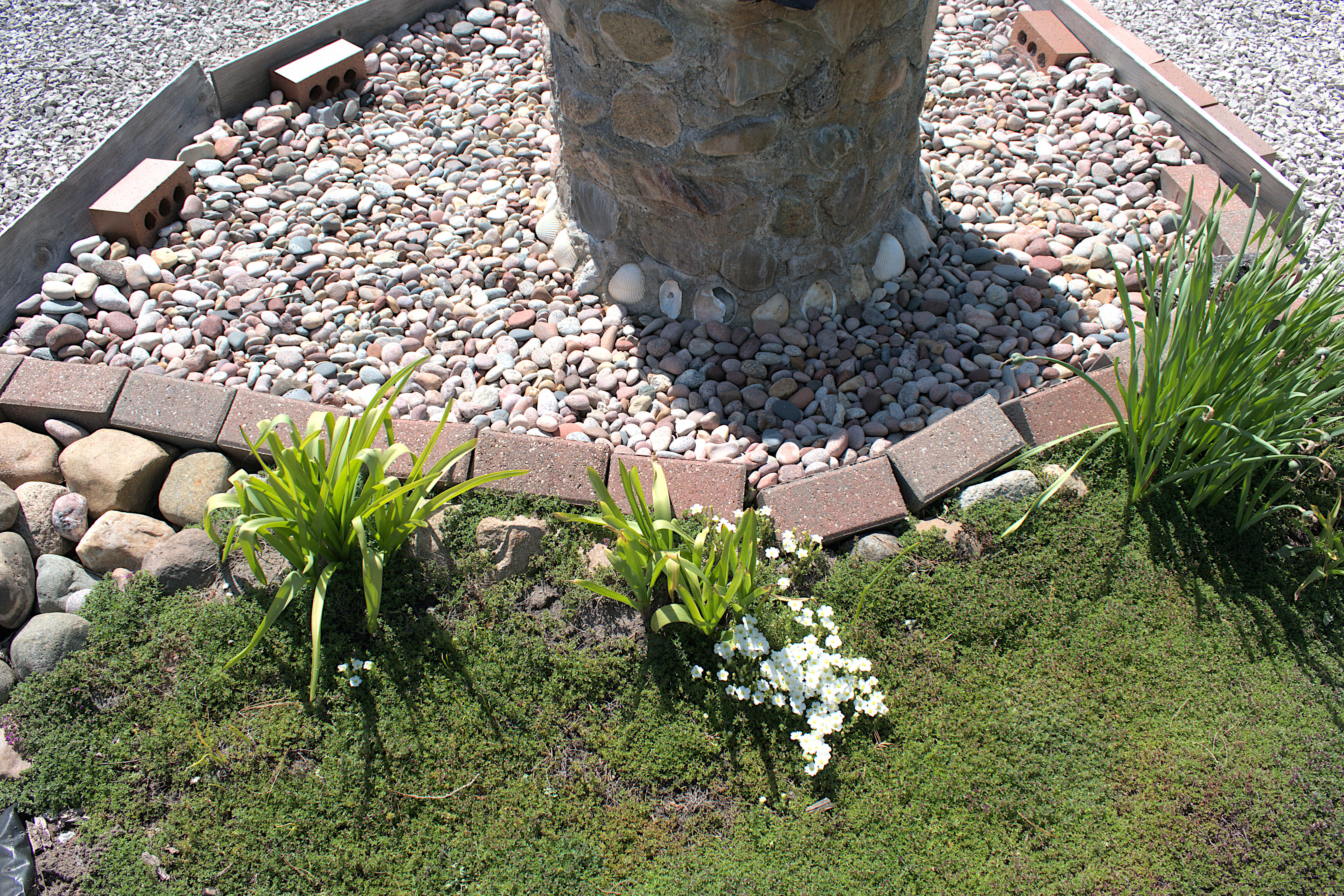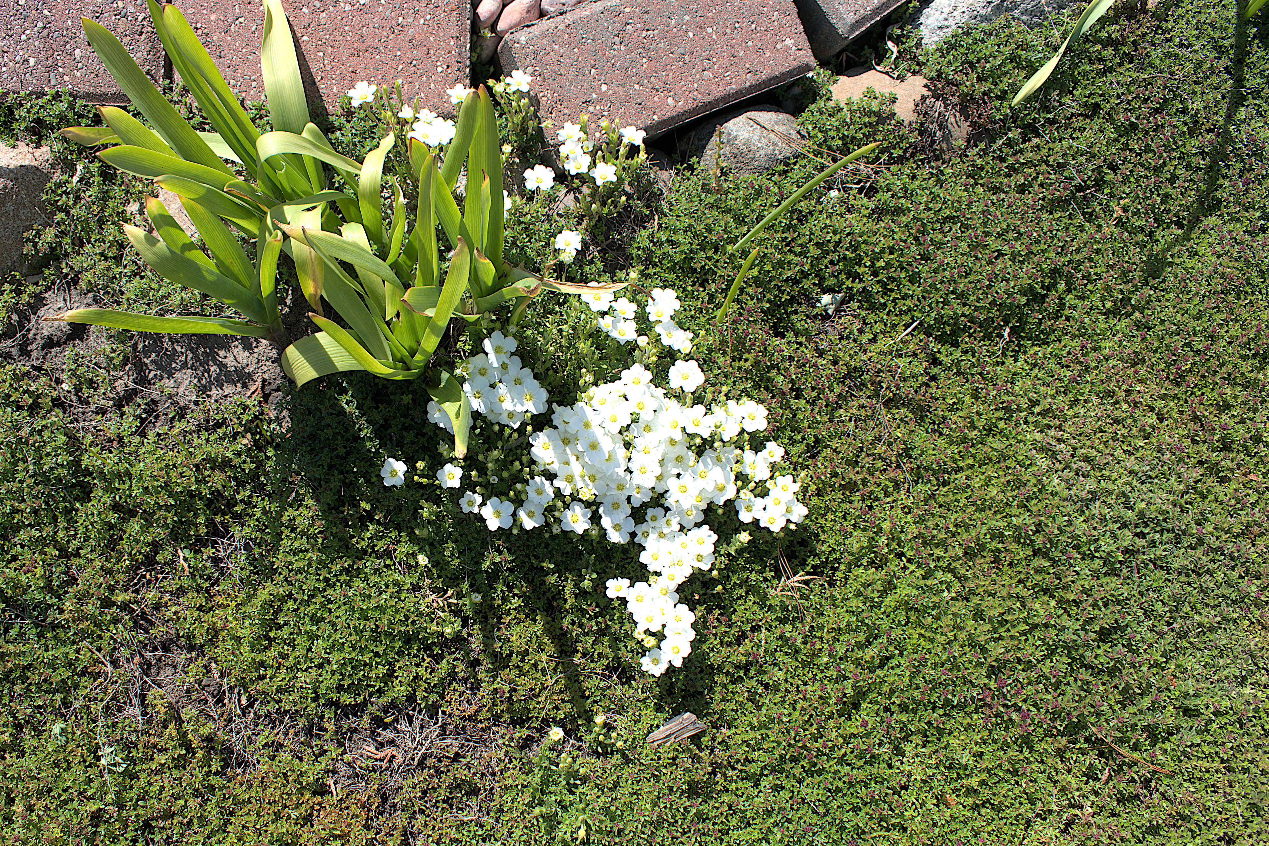 There is a picture in the mixed flowers page of the Sandwort from the first spring after we planted it (Fall of 2016), but this is how they look now all these years later with very little attention paid to them other than weeding as needed. I’ve not tried to propagate them or protect them and these conditions are usually very tough on them. They’ve done better the past few years now that we’re not using the birdbaths as much - the bleaching took it’s toll on any plants right near that edge. The Sandwort has somewhat migrated to where they are getting more shade and probably more moisture is being retained along that edge.